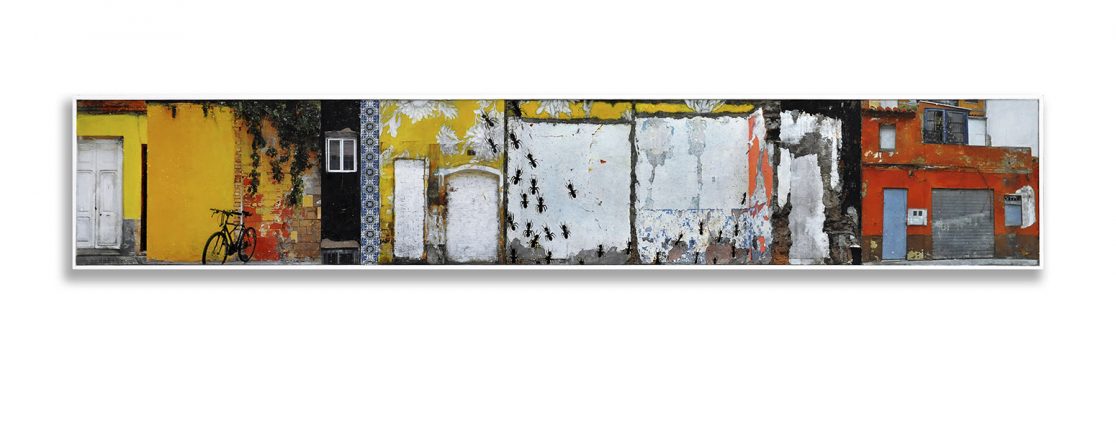 El proceso creativo se inicia en el contacto directo con el barrio, perdiéndome en sus calles y callejones, fotografiando todo aquello que me permite la tarjeta de memoria de la cámara y las vecinas del Cabanyal desconfiadas. Las imágenes extraídas se descomponen en fragmentos con los que luego se crean nuevos pasajes, nuevas calles imposibles. A continuación, estas imágenes se transfieren al soporte de madera y son intervenidos con la pintura acrílica, barnices y otros materiales pictóricos. De-construido y luego construido de nuevo con otras leyes propias de una obra de arte, el Cabanyal resultante no es solo un juego visual, un homenaje a la estética de sus casas y calles, arquitectura y revestimientos, sino también una llamada a ser conscientes del valor de aquello que nos rodea, una invitación al respeto, a la memoria y a la protección del patrimonio cultural e histórico de nuestras ciudades.