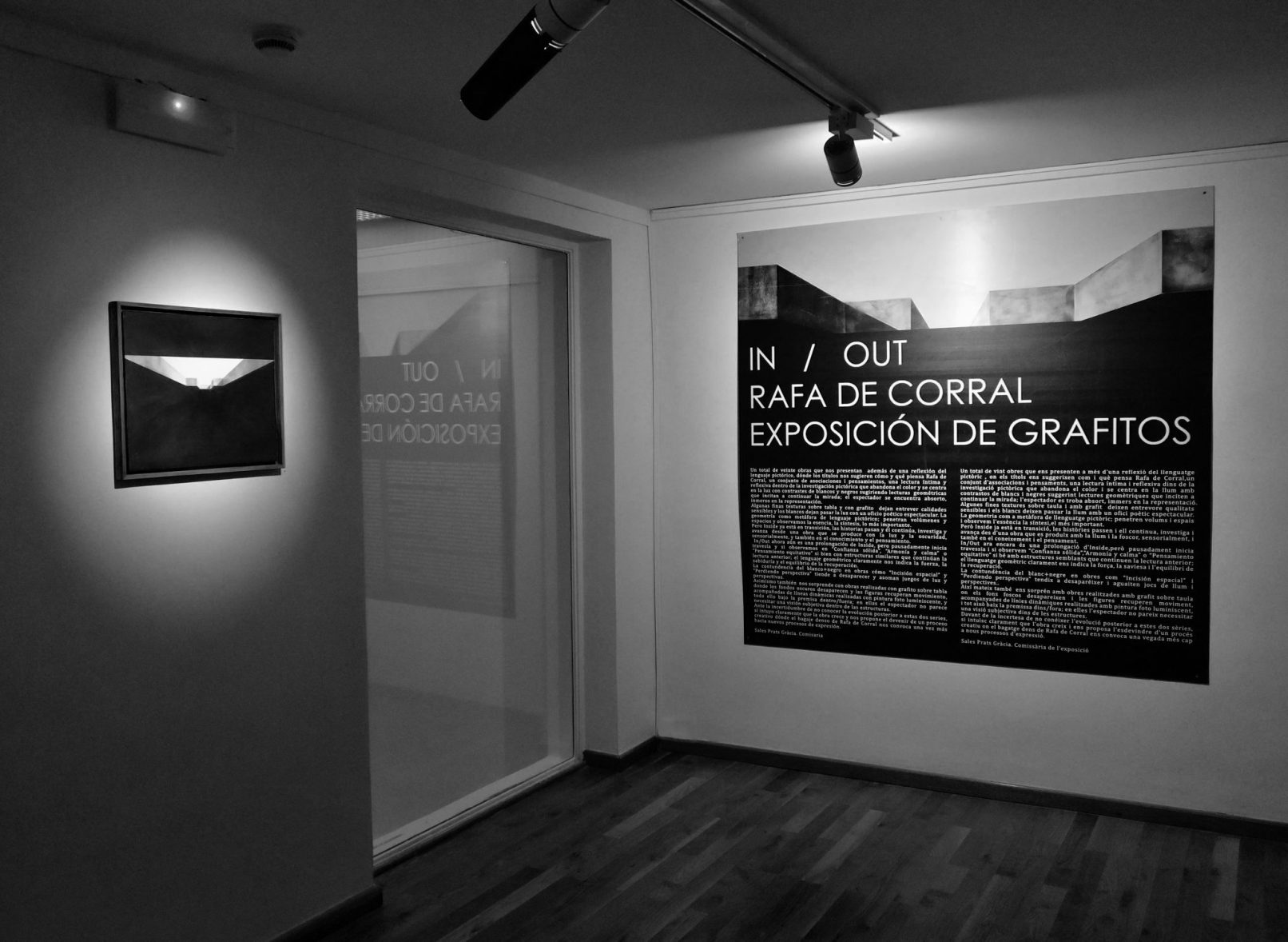 Alguns ja esteu assabentats que In / Out és un parèntesi conseqüència d’un període de lapse creatiu immers en un dol, un parèntesi d’introspecció centrat en la desaparició i la memòria. Però a més a més és una reflexió del llenguatge pictòric, una lectura íntima i reflexiva omplida de lectures geomètriques on l’espectador es troba absort, immers en la representació.