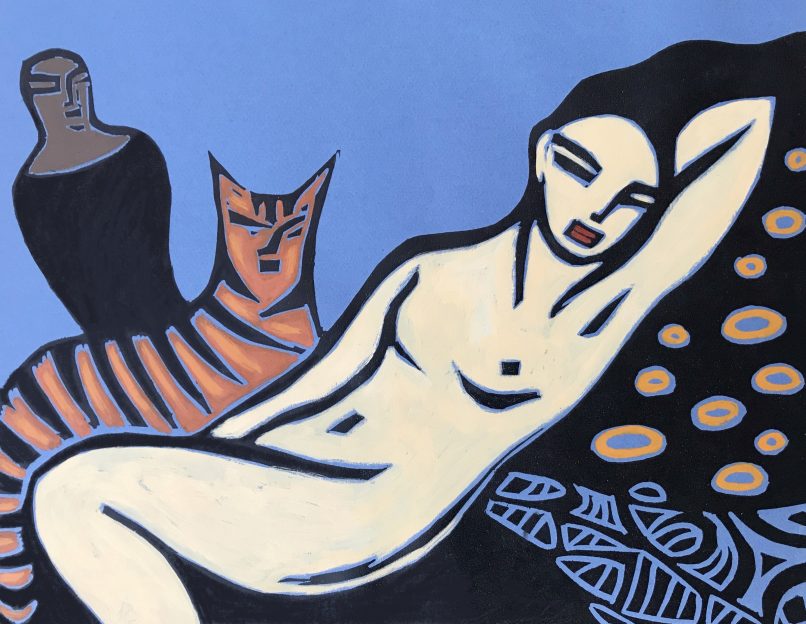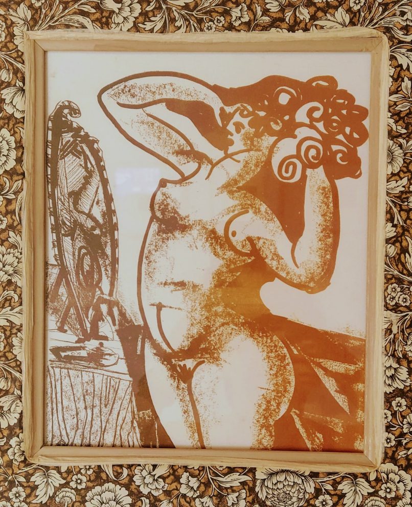 RESERVADO.Siesta 28 x 39 cm. Xilografía sobre papel de color, coloreada a mano.125€( sin marco 90)